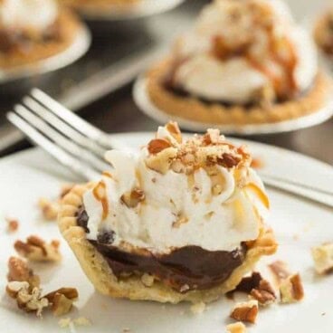 Hi Ashley! I was just thinking about chocolate pie the other day! This version sounds delicious with the pecans and caramel and little pies are much more fun!