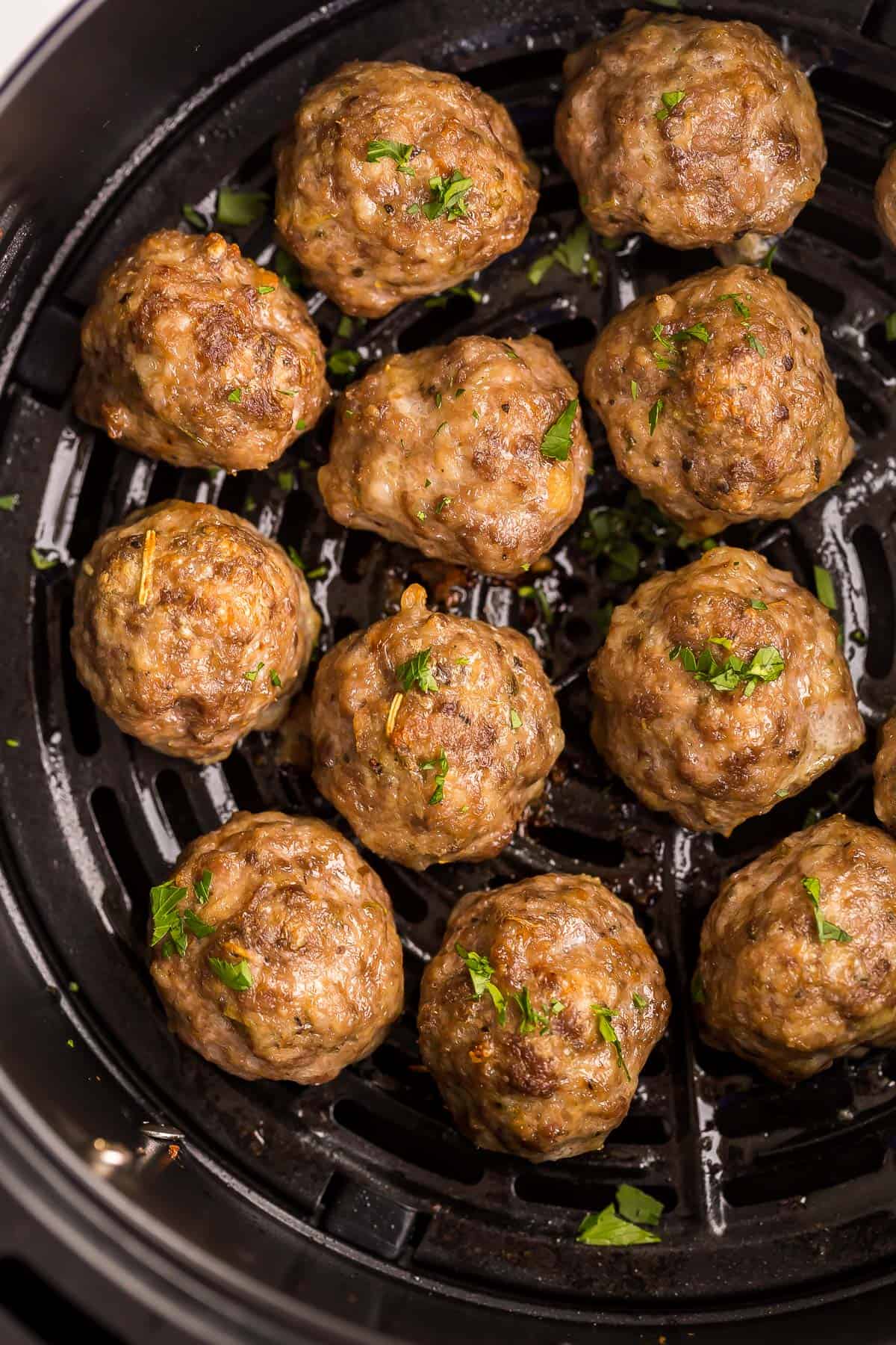 These Air Fryer Meatballs are a mix of beef, pork, Parmesan, and Italian seasoning for the perfect juicy bite. They cook up crispy on the outside and tender inside in just 20 minutes!