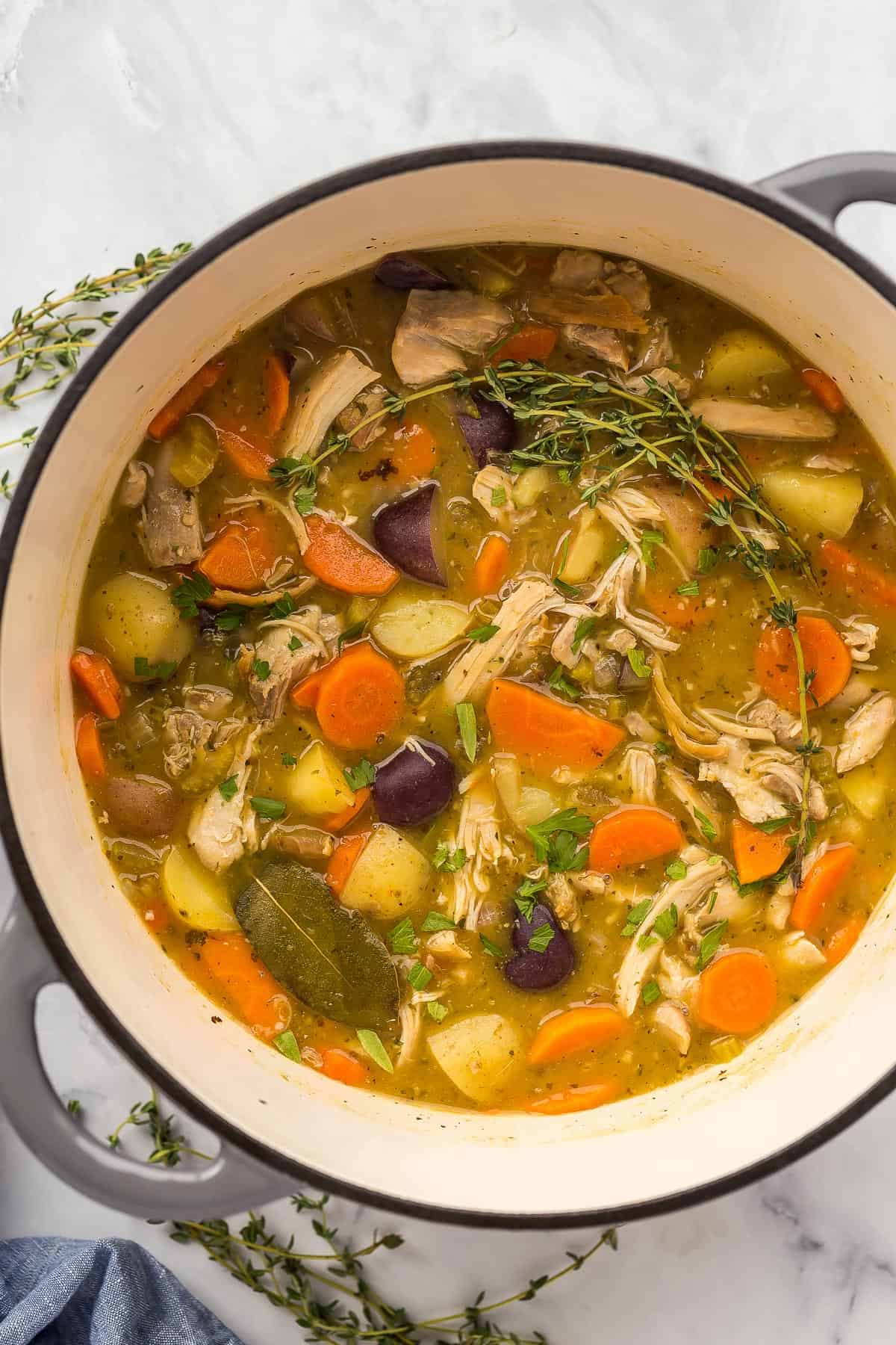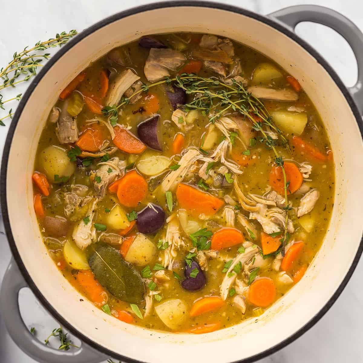 I made this tonight for the first time…delicious! Will definitely make again! I made dumplings and simmered with them on top. Do you have a recipe for dumplings? Mine were just okay! I left out the thyme and Bay Leaf as we don’t like the flavor of either. Even without, the seasoning was perfect! Thankyou!