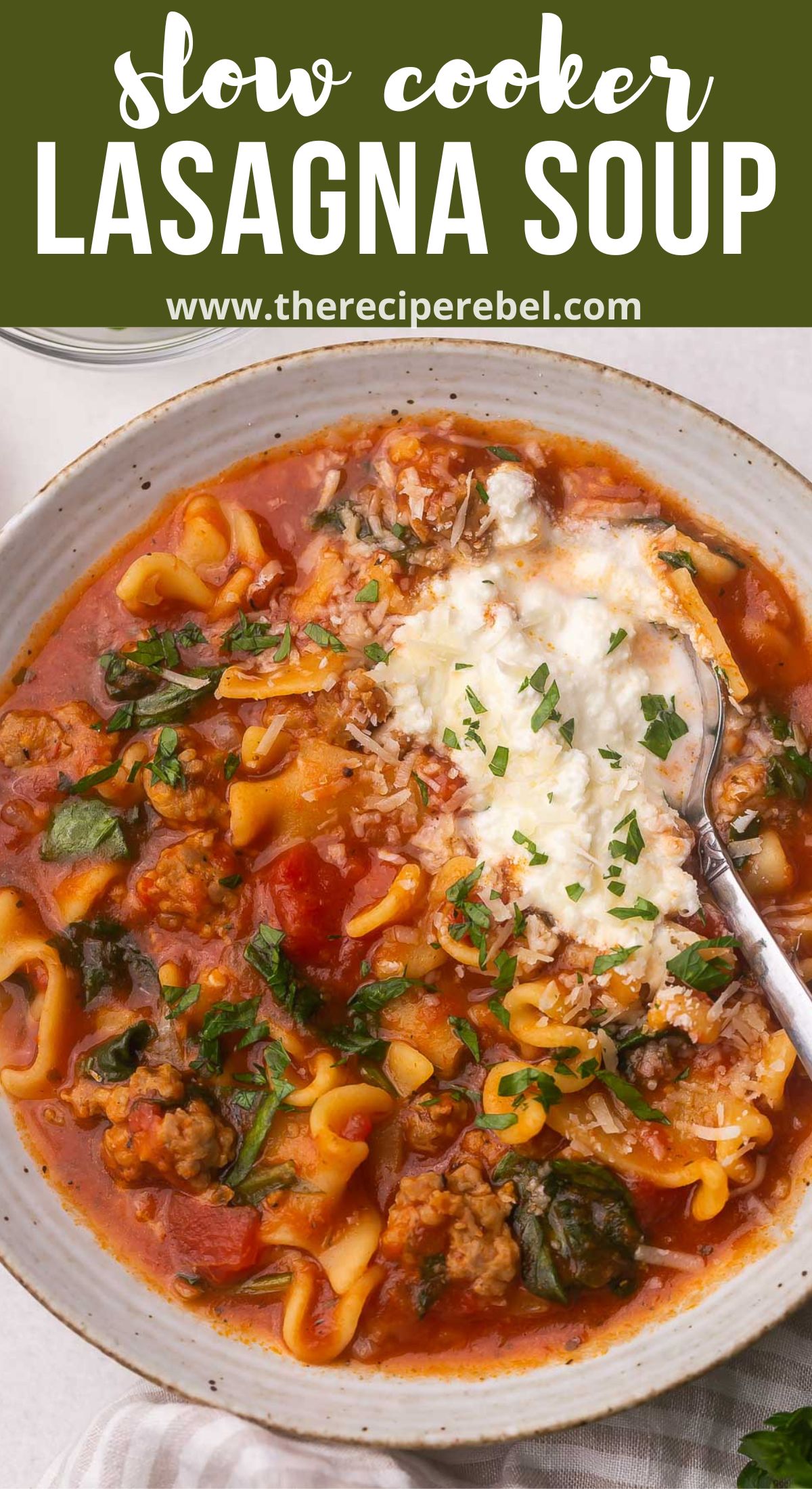 This Crockpot Lasagna Soup recipe is full of flavor! It has a tomato base, made with Italian sausage, lasagna noodles, and lots of Italian herbs and cheeses. It can also be made in the Instant Pot!
