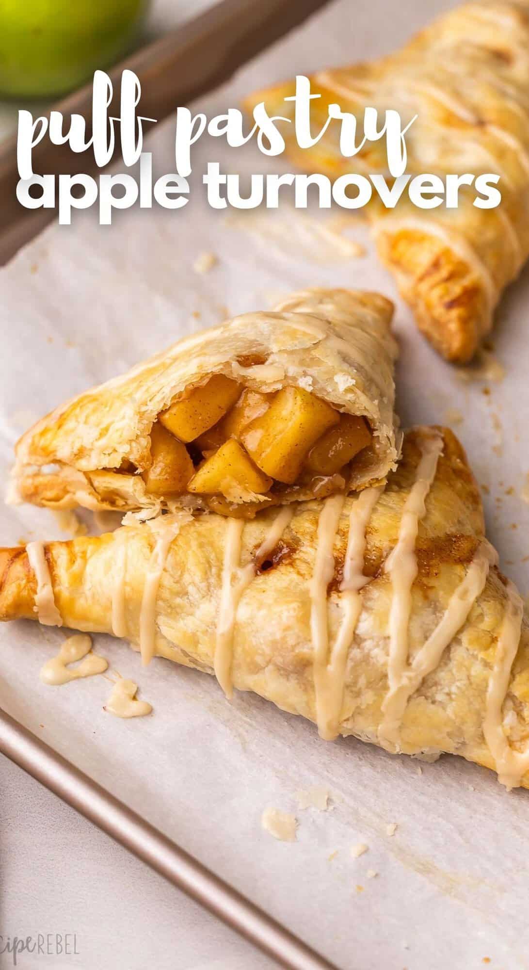 - Whisk together the powdered sugar and 1 tablespoon maple syrup. Add just enough maple syrup so that a glaze comes together and drizzle over the warm turnovers before serving.